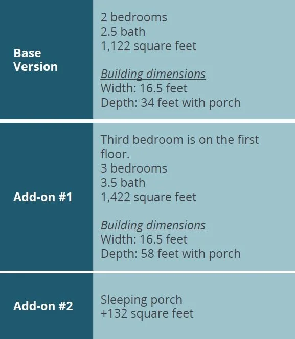 This single-family house has been designed to fit on a 30’ wide lot with a small driveway. If alley access is available, even narrower lots can be accommodated. A sleeping porch is optional, and easily enclosed and insulated by any builder.